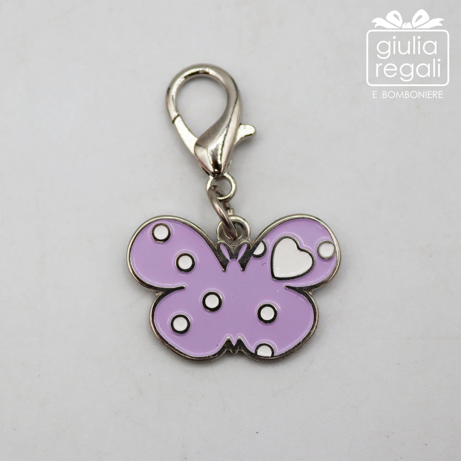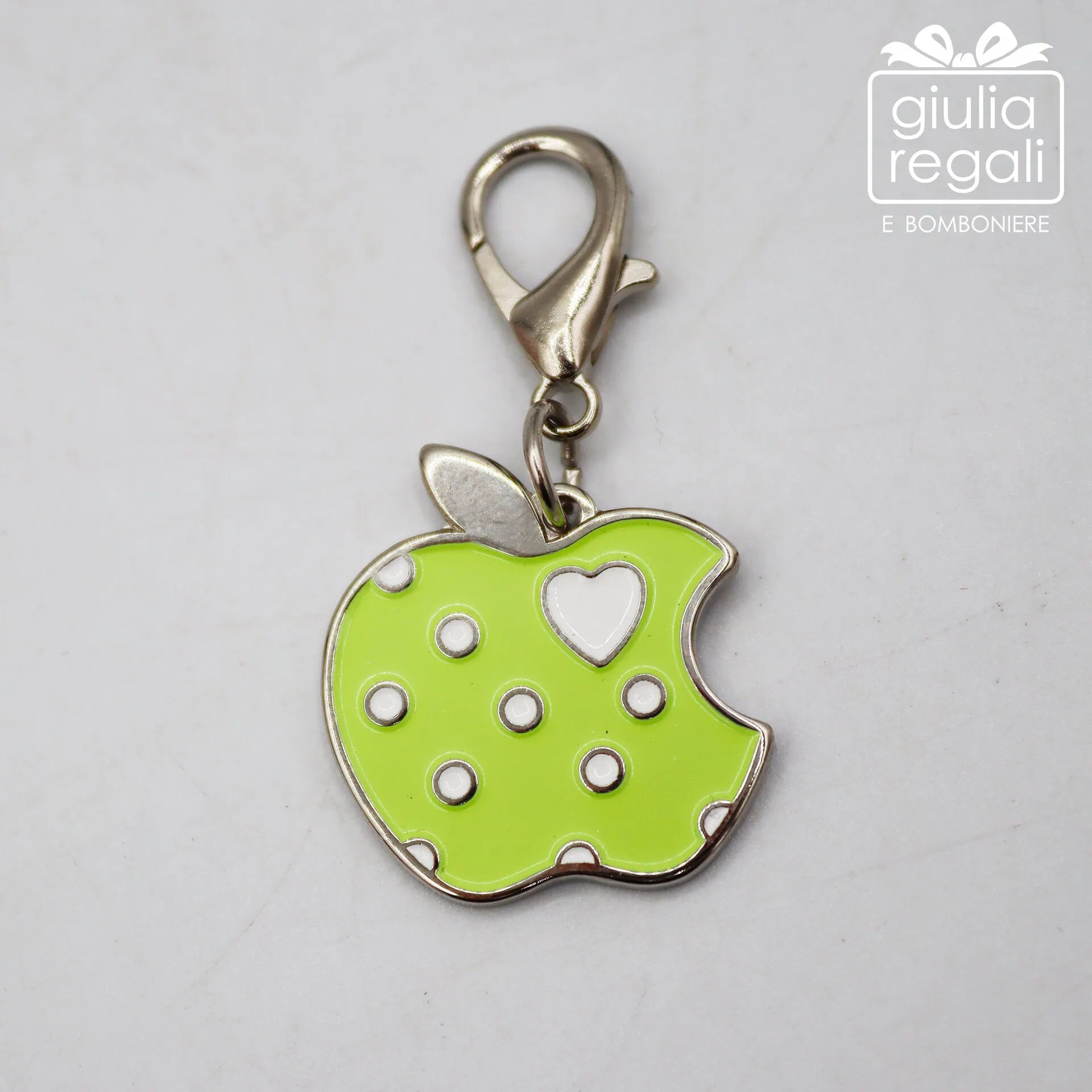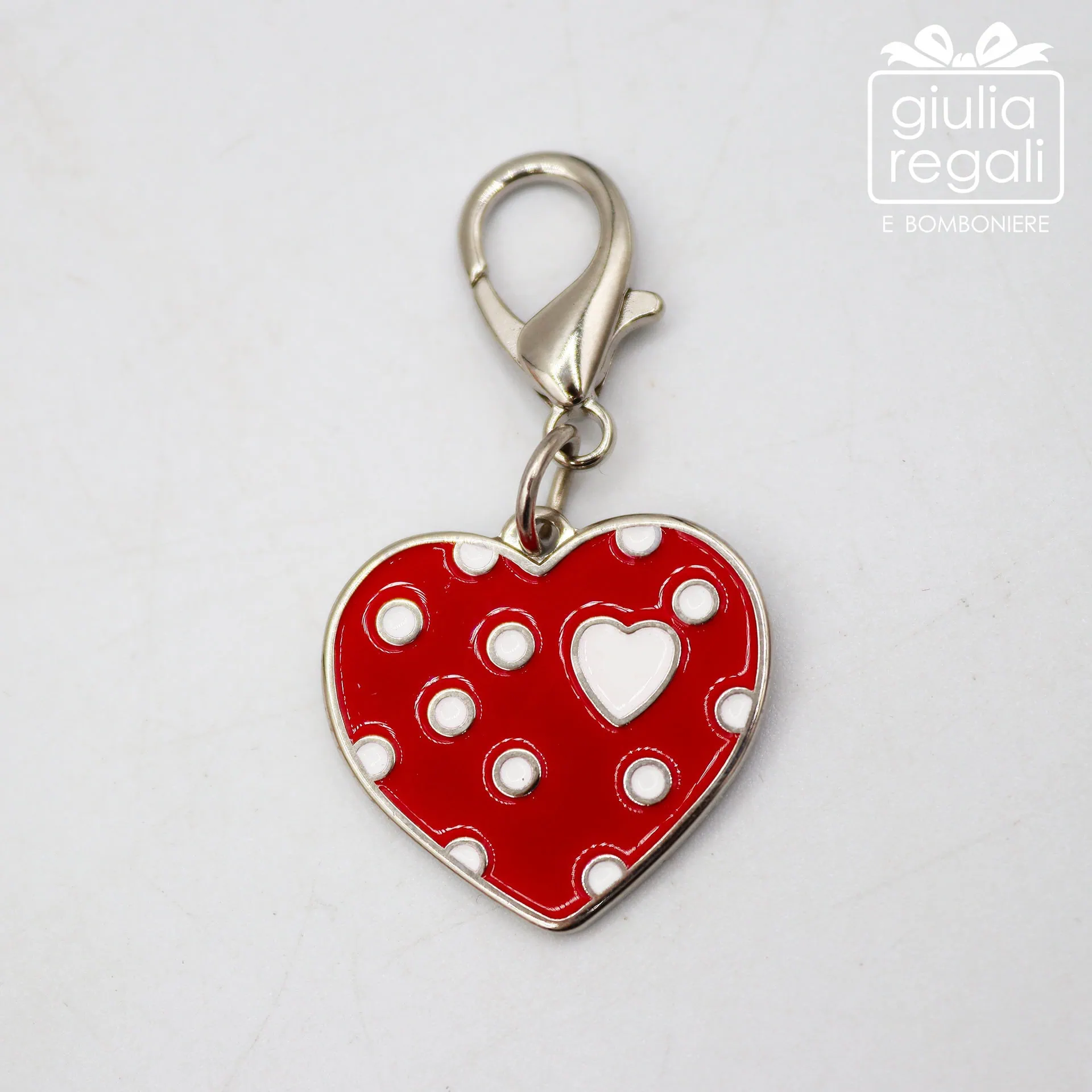 Ogni charm è realizzato in metallo con smalto lucido colorato e presenta piccoli dettagli a pois e un cuoricino centrale, elemento che rende il design ancora più dolce e riconoscibile.