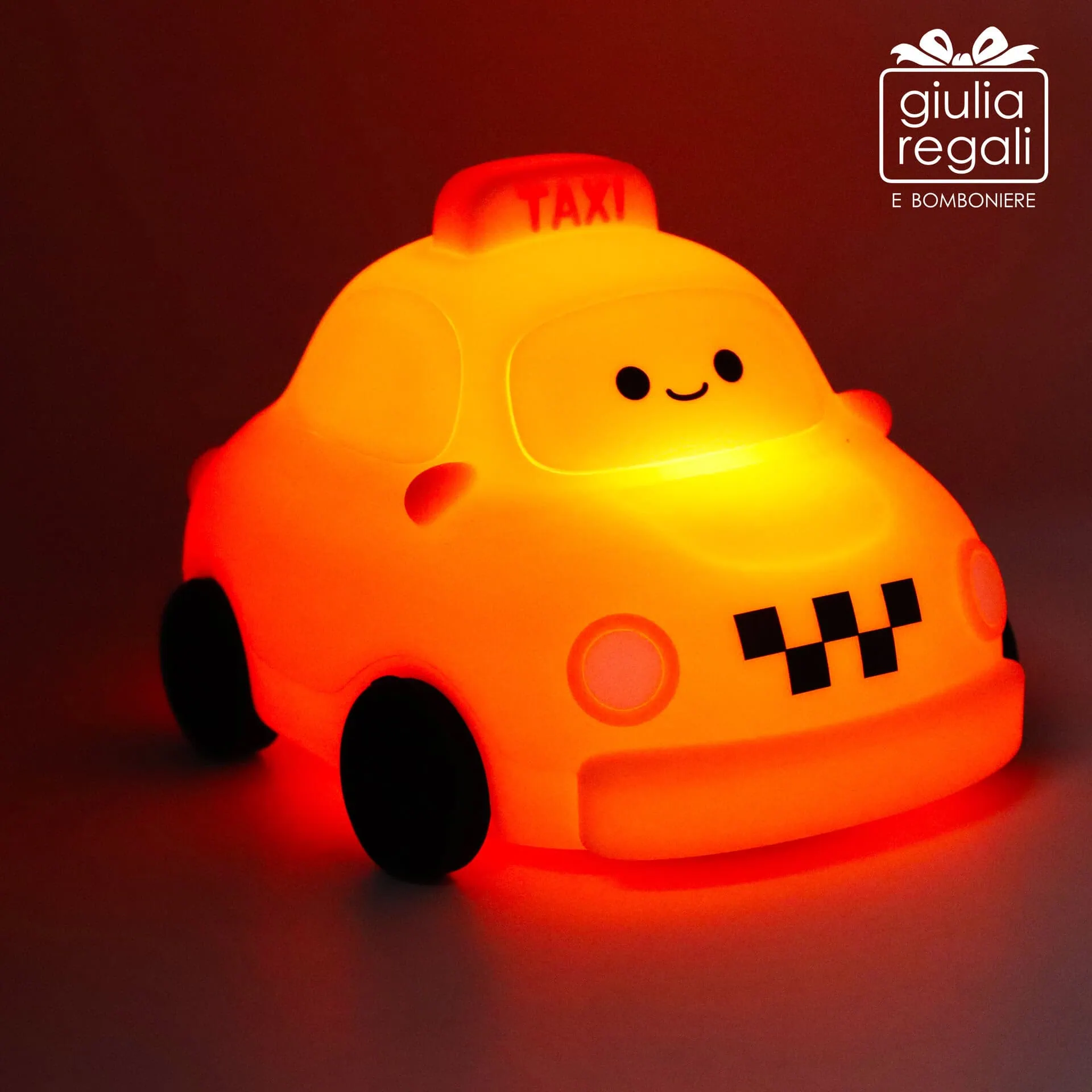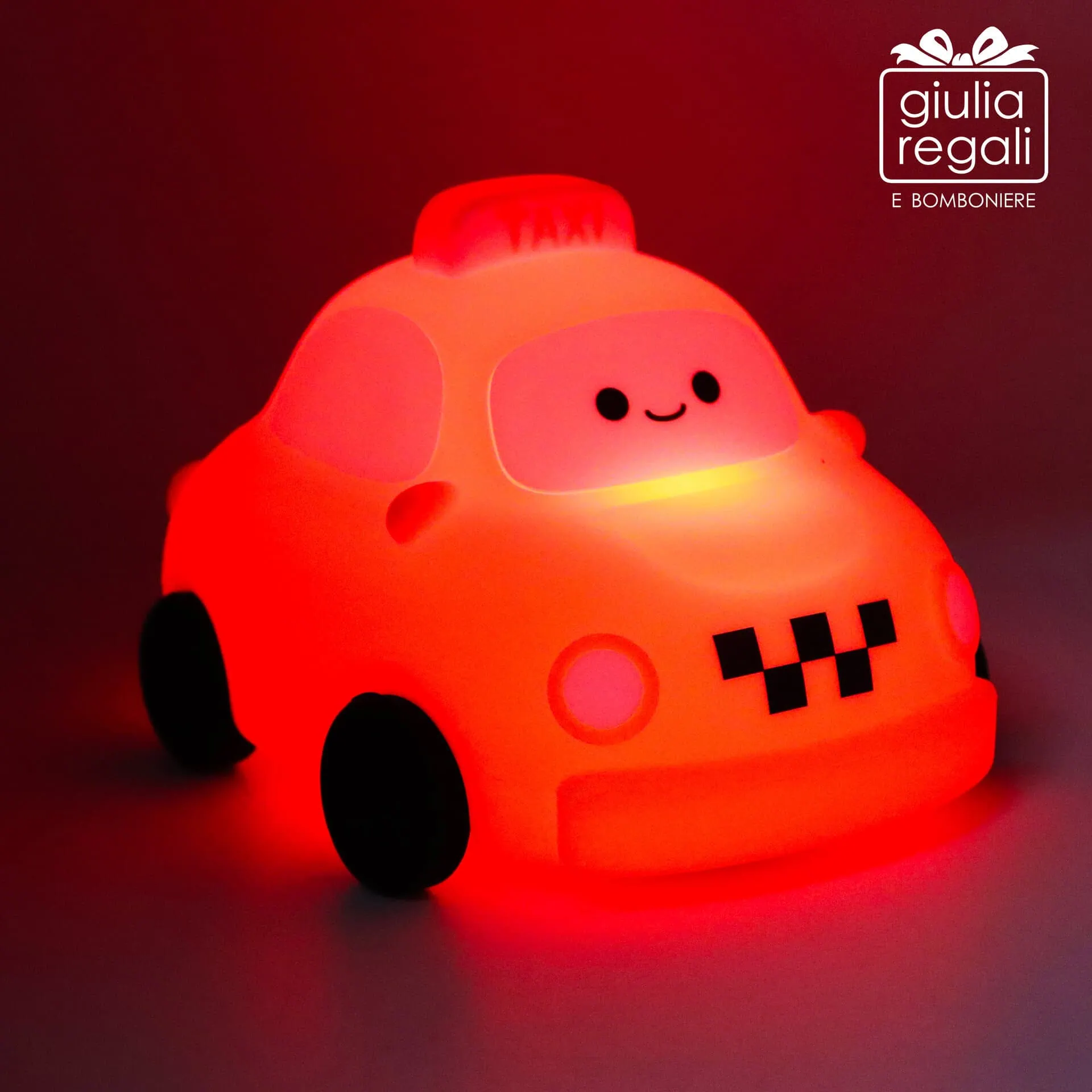 Lampada LED in silicone a forma di taxi, morbida al tatto e sicura per i bambini. Luce multicolore rilassante, ideale come luce notturna. Dimensioni: 12 x 9 x 8 h cm.