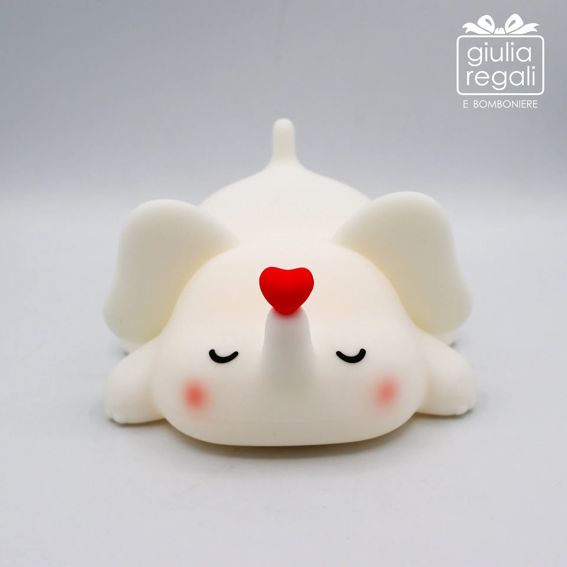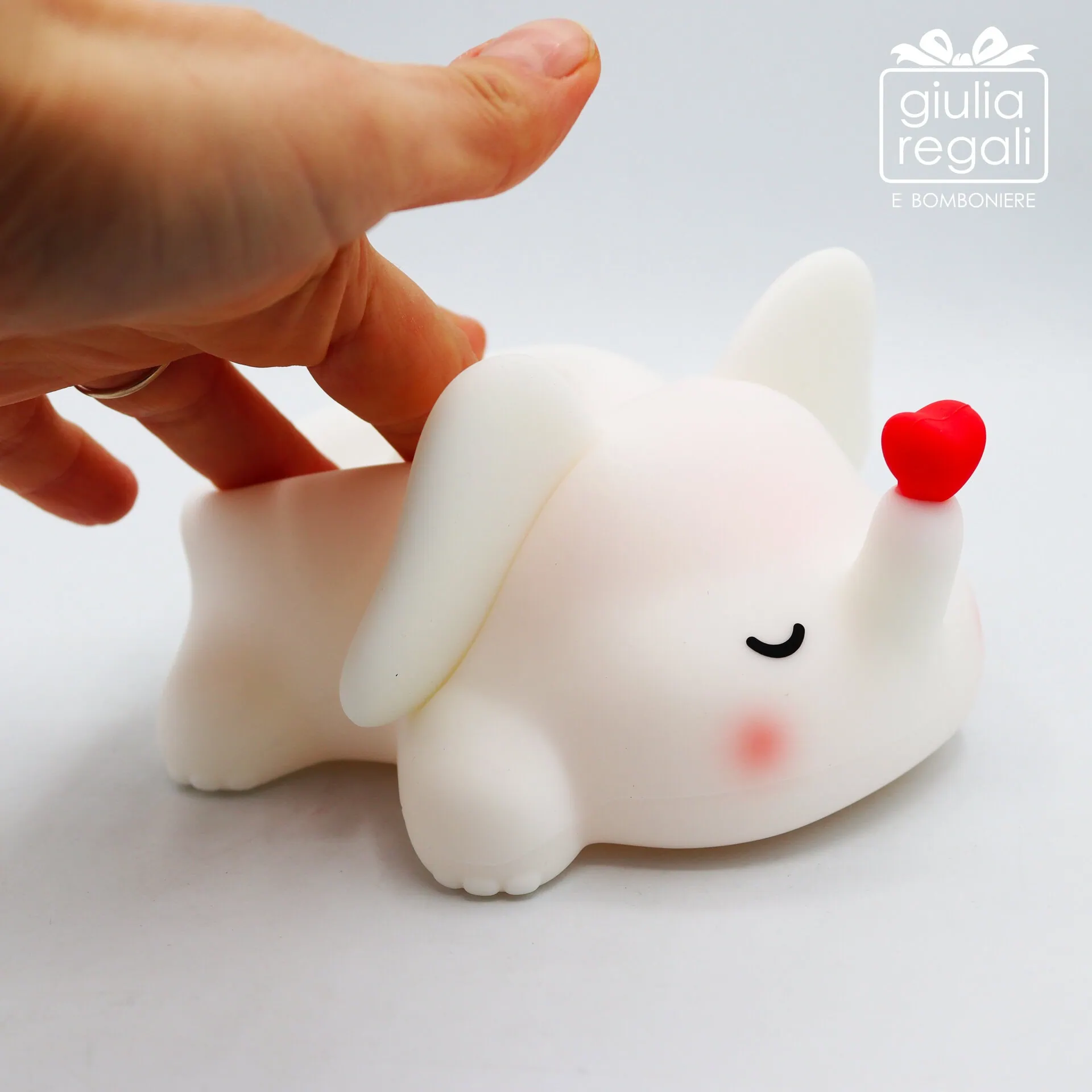 Lampada LED elefante in silicone con cuoricino – luce multicolore