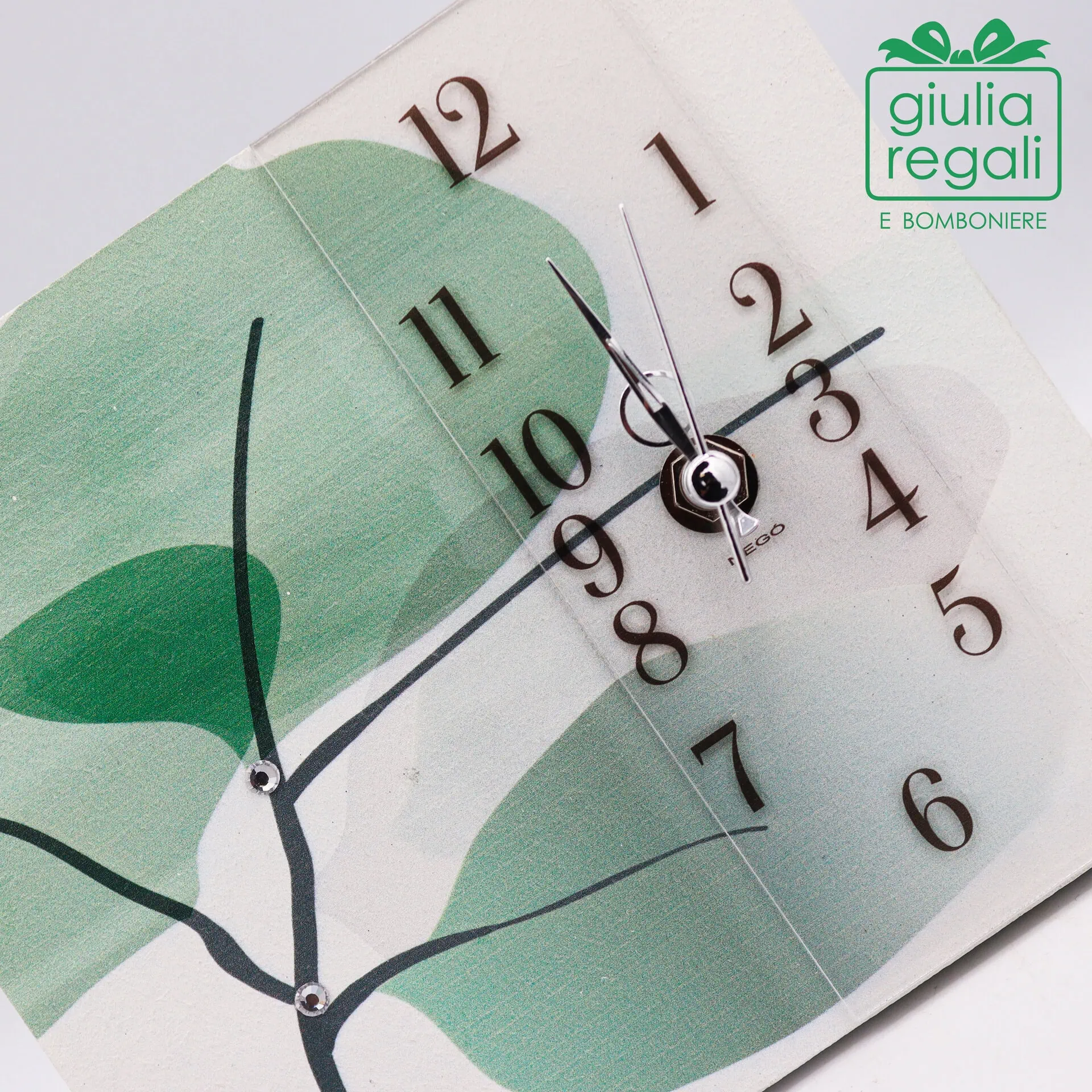 Orologio da tavolo in legno foglie verdi – Made in Italy