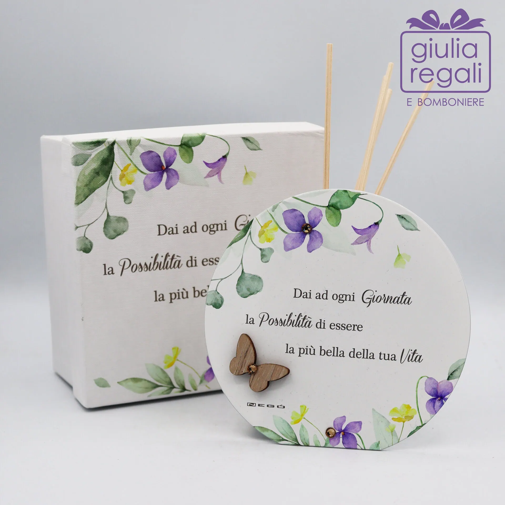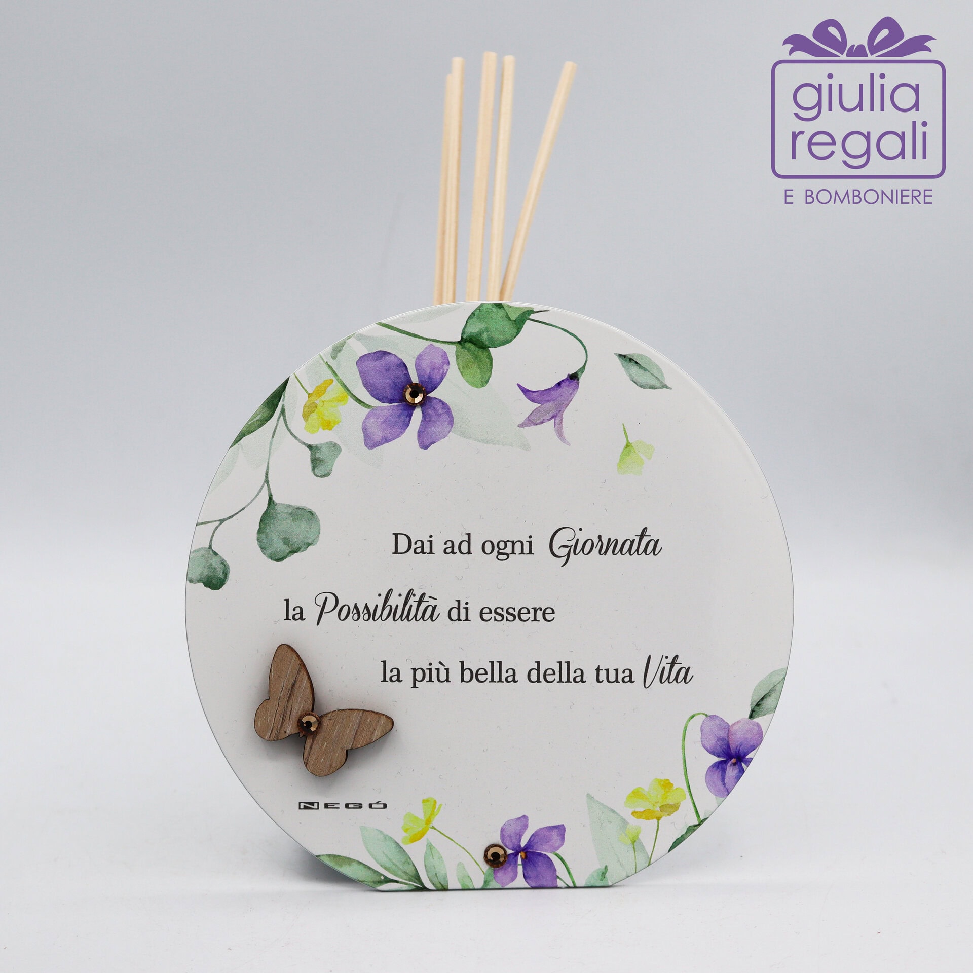Profumatore ambiente in metallo fiori viola e farfalla – Made in Italy