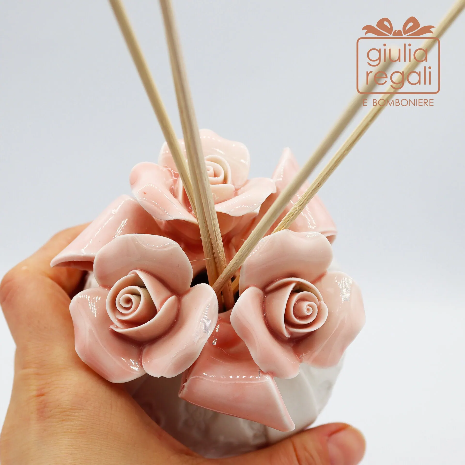 Profumatore in porcellana con rose color pesca – Diffusore ambiente 8 cm