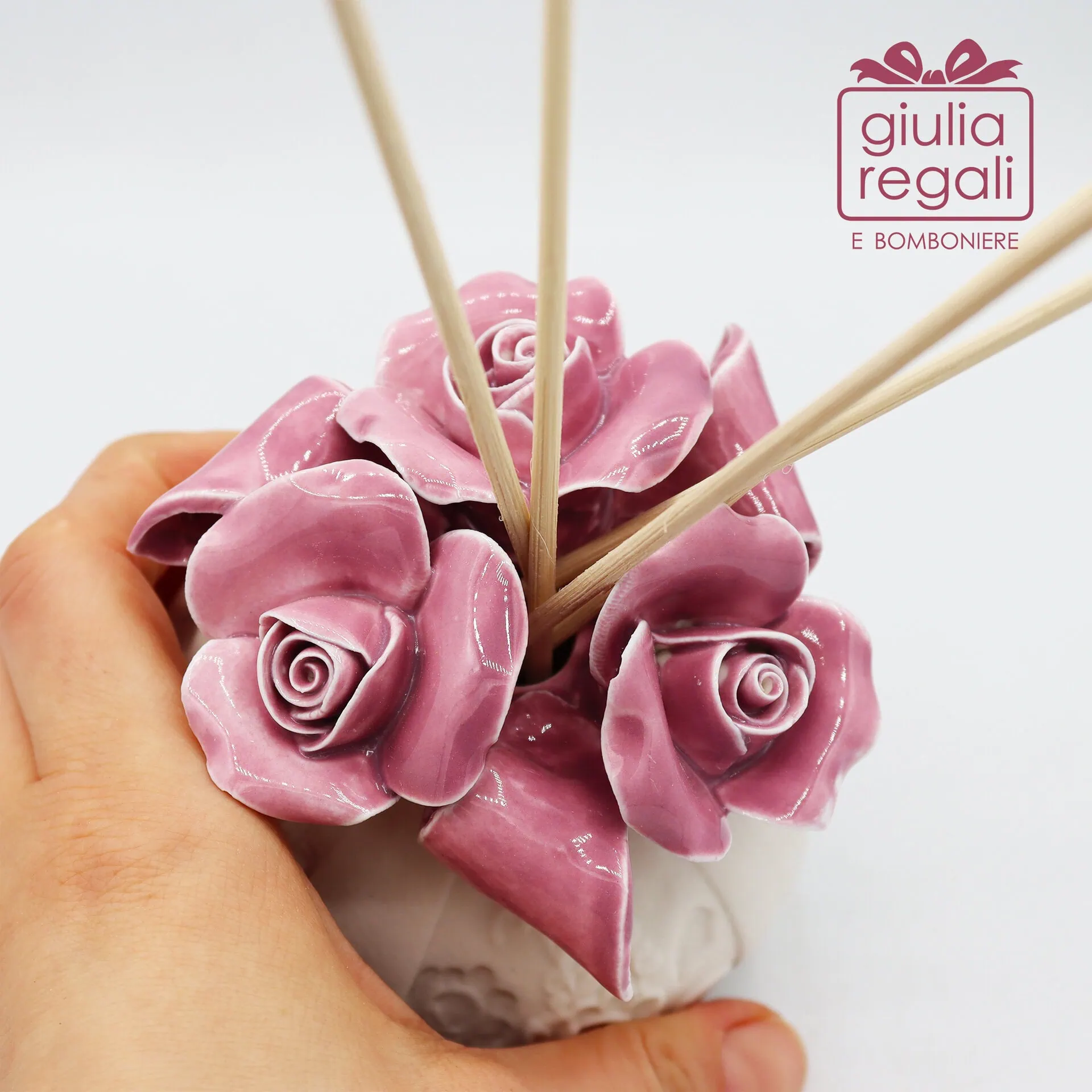 Profumatore in porcellana con rose rosa antico – Diffusore ambiente 8 cm
