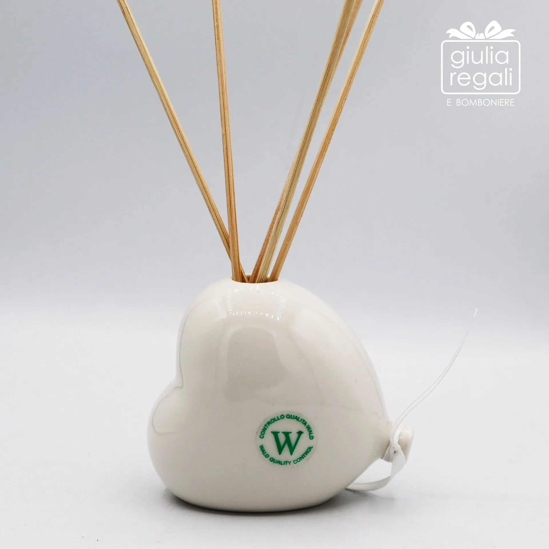 Profumatore Palloncino a forma di cuore in porcellana con scritta decorativa, profumo d’ambiente 30 ml e bastoncini. Dimensioni 8 x 5 x 8 h cm.