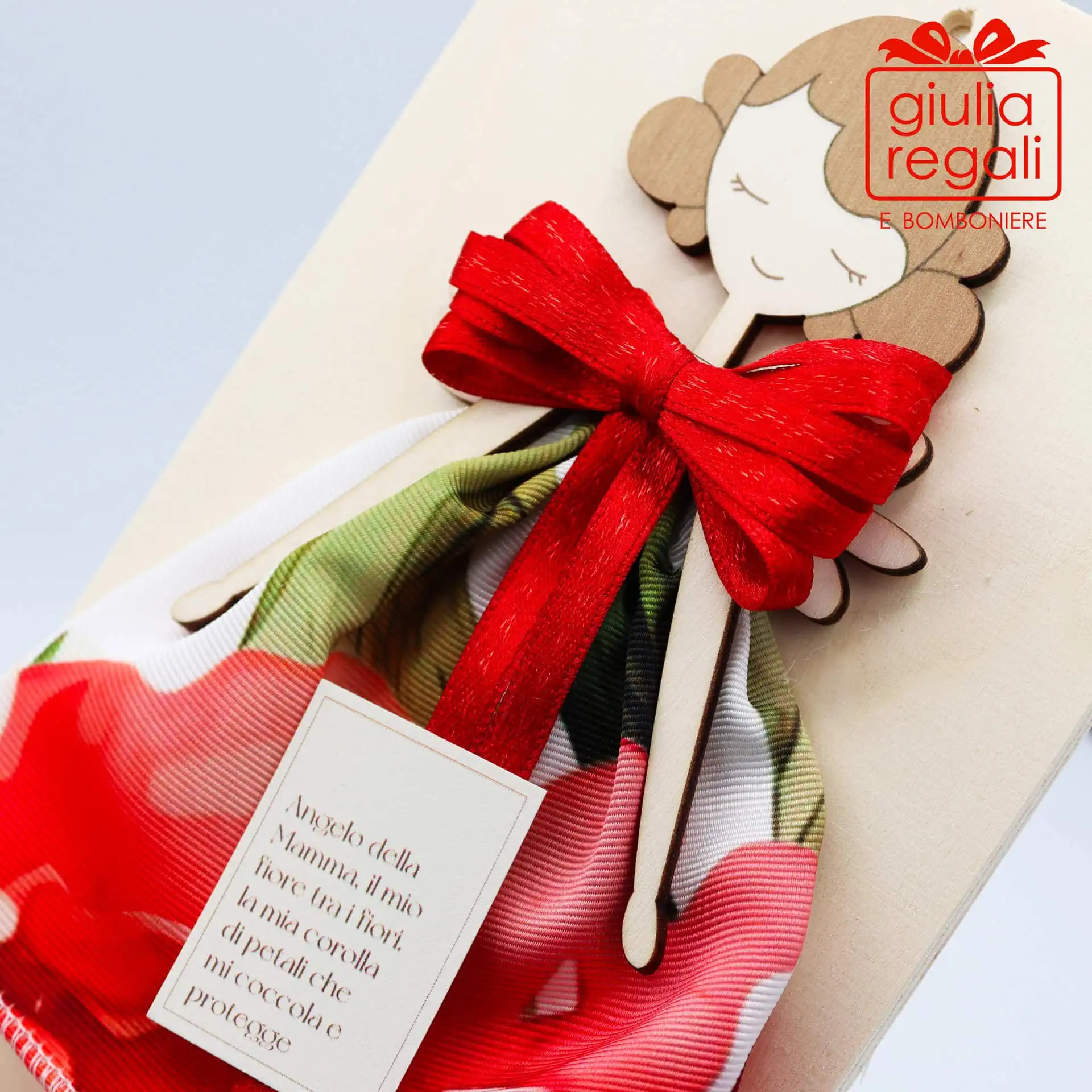 Gli Angeli sono disegnati nel laboratorio creativo su di un supporto in legno e decorati a mano, uno ad uno, con tessuti pregiati di manifattura italiana. Ogni oggetto è un pezzo unico, come unica è la persona alla quale è destinato.
