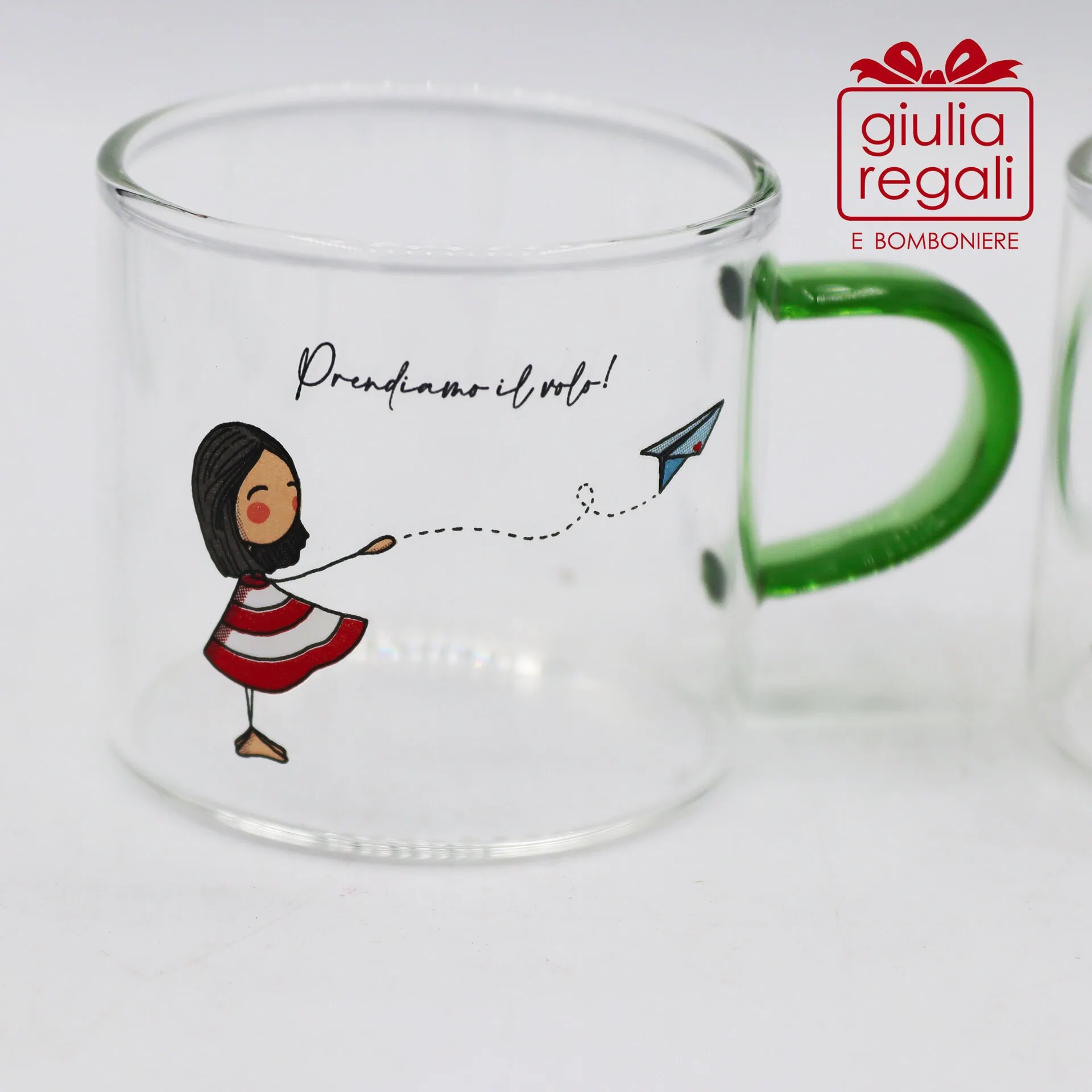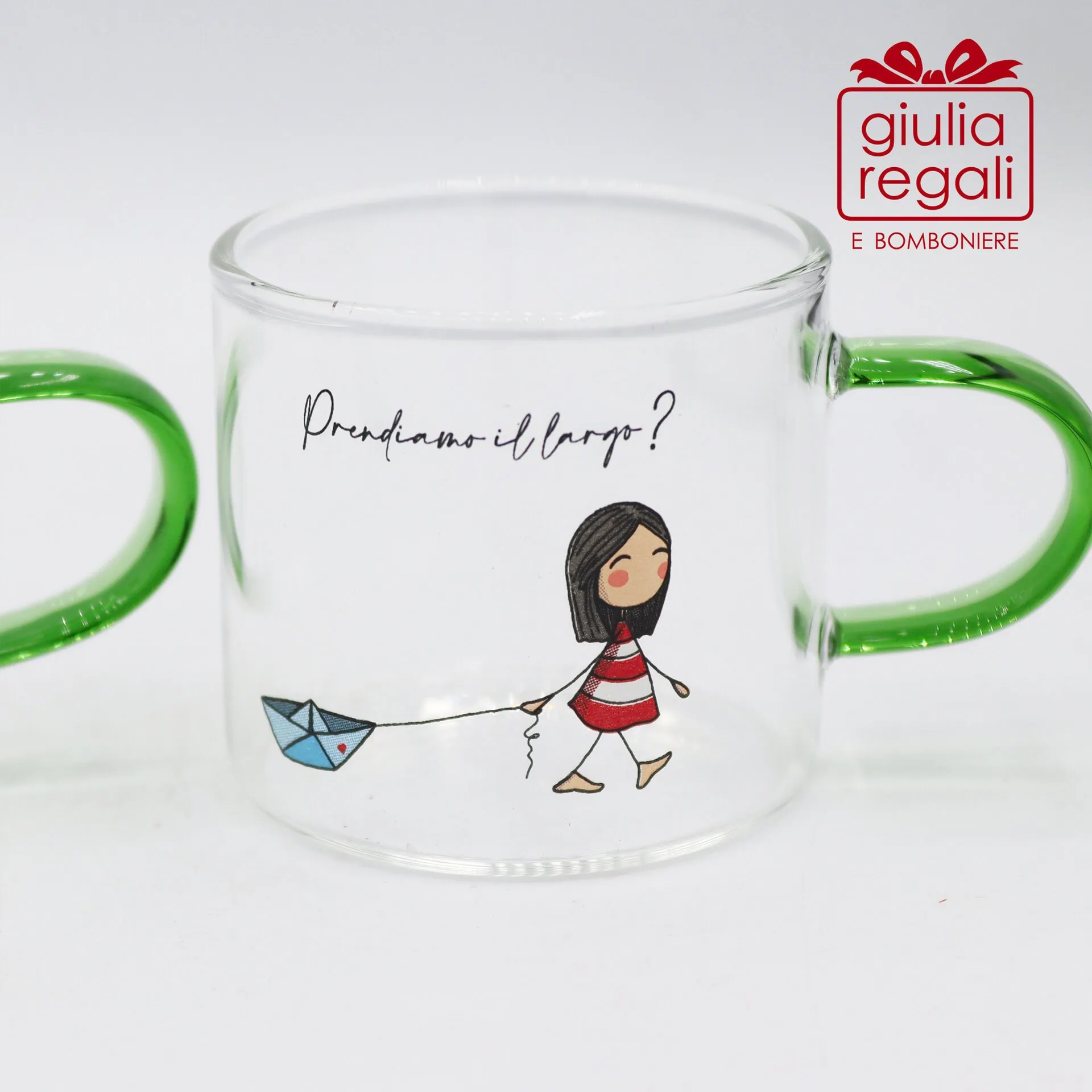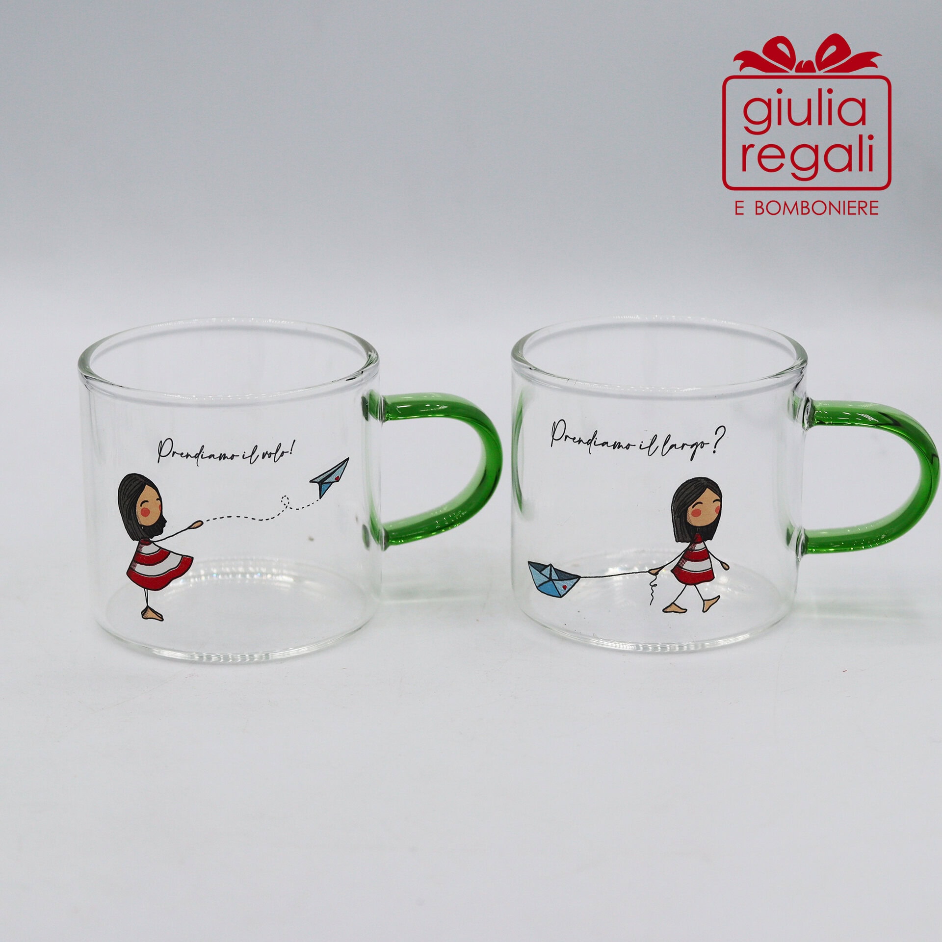 Set 2 tazzine in vetro con manico verde La Tipa per Cuorematto