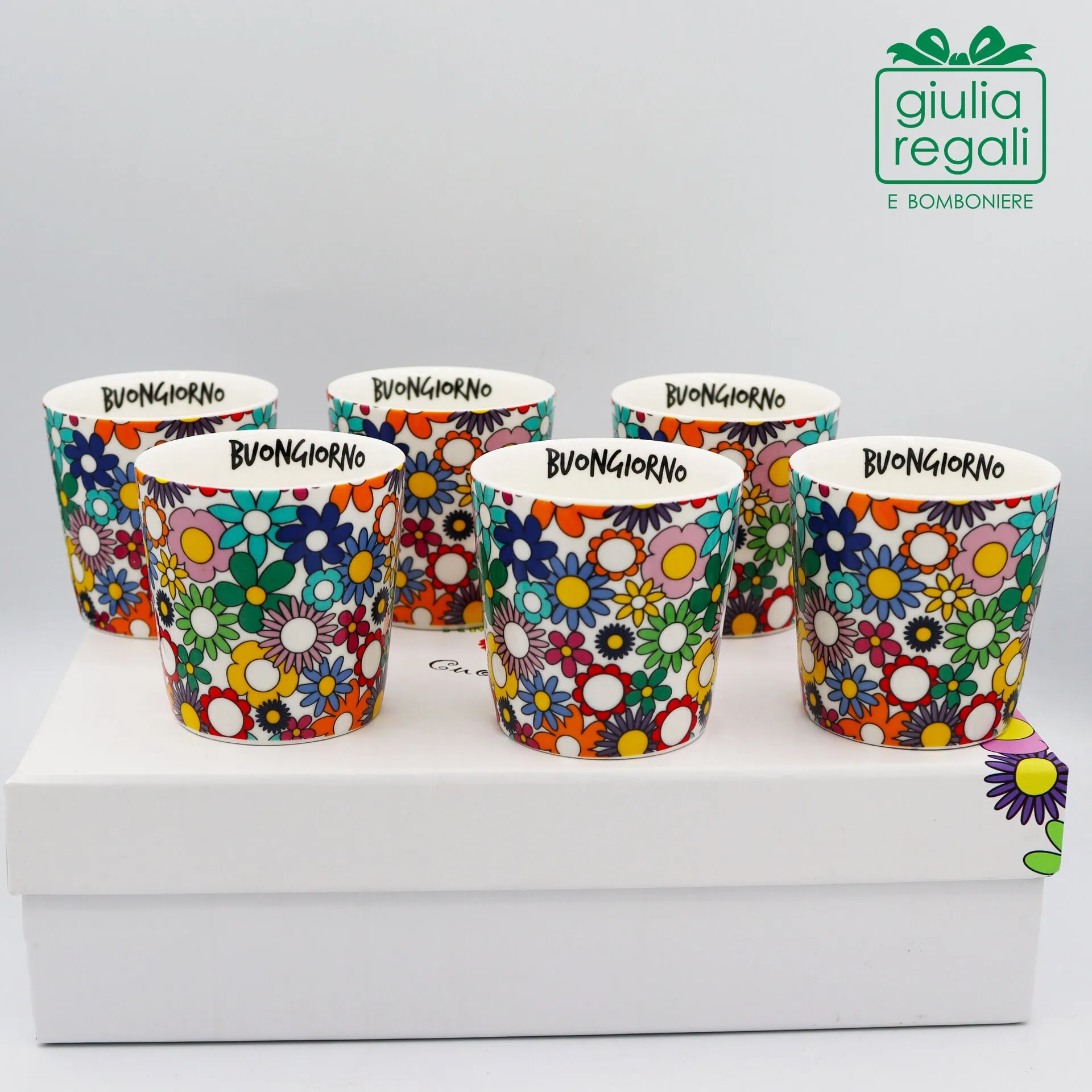 Set 6 bicchierini da caffè Fiorello Cuorematto con scatola regalo