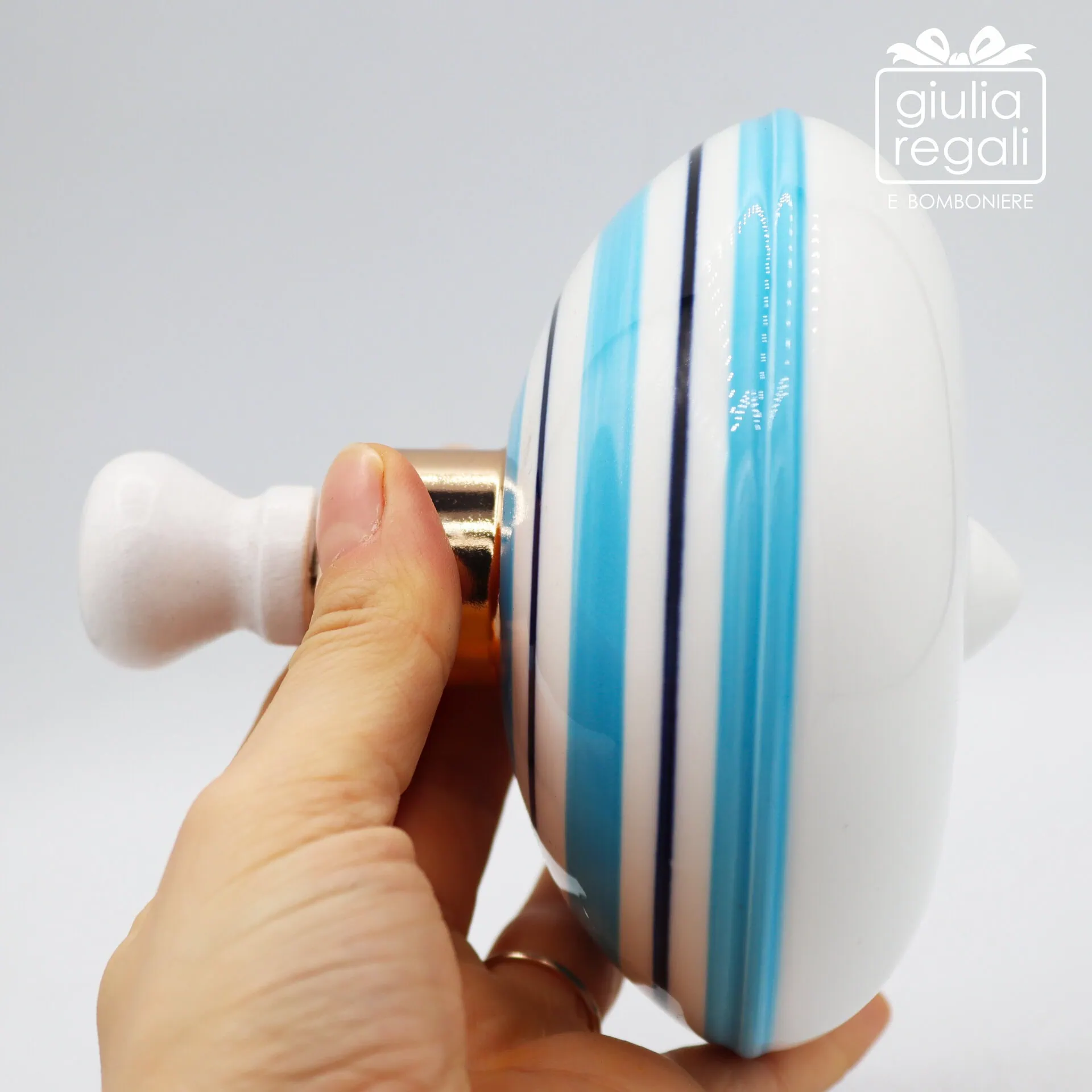 Trottola in porcellana con ingranaggio Celeste