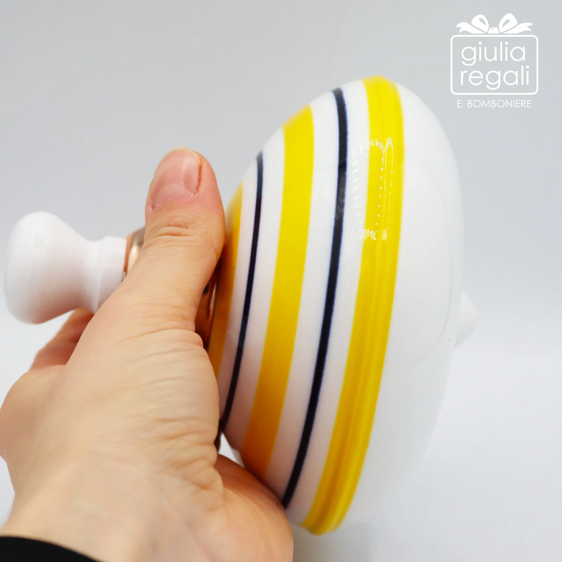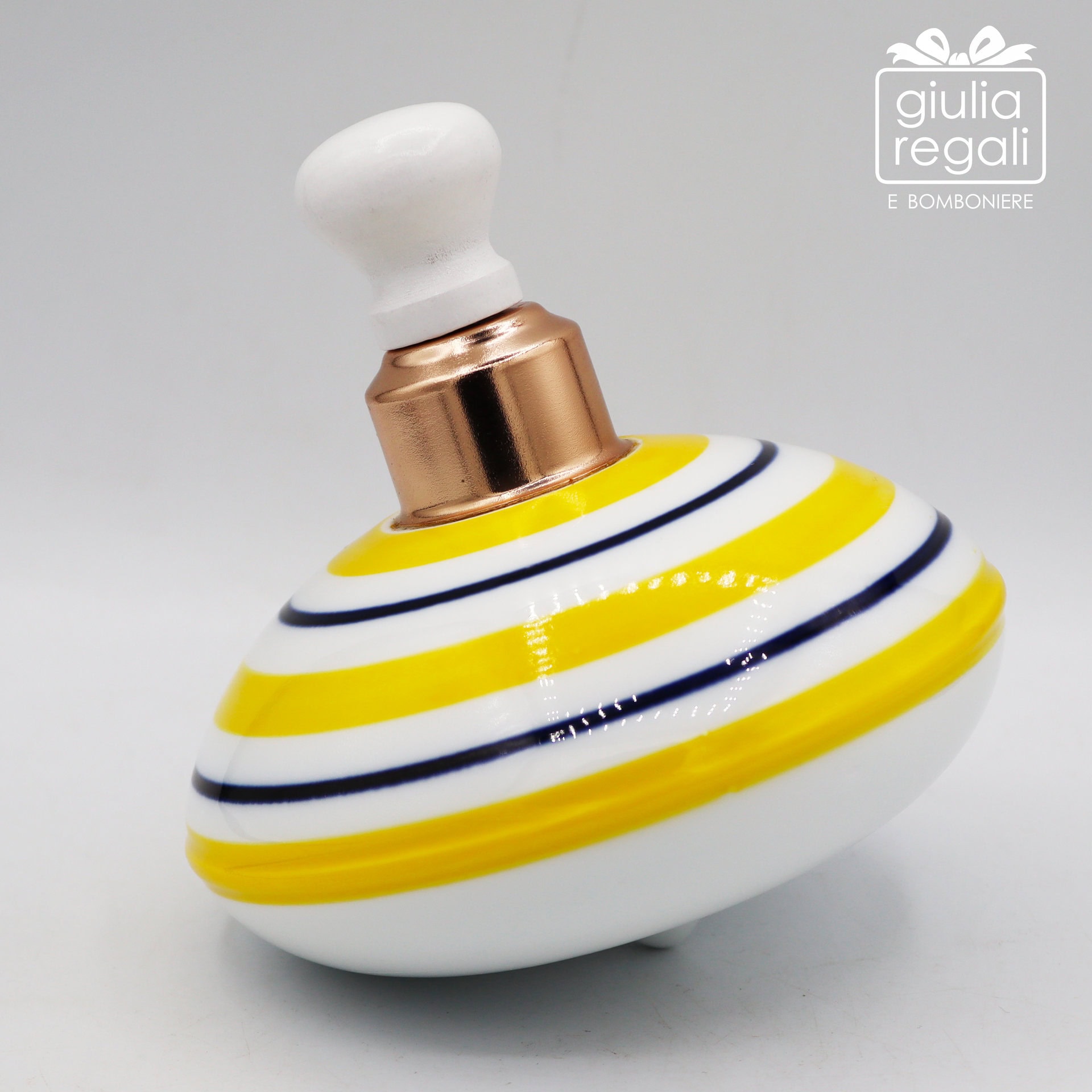 Trottola in porcellana con ingranaggio, caratterizzata da finitura lucida e linee eleganti. Un oggetto che unisce gioco e design, ideale come idea regalo originale o complemento d’arredo.