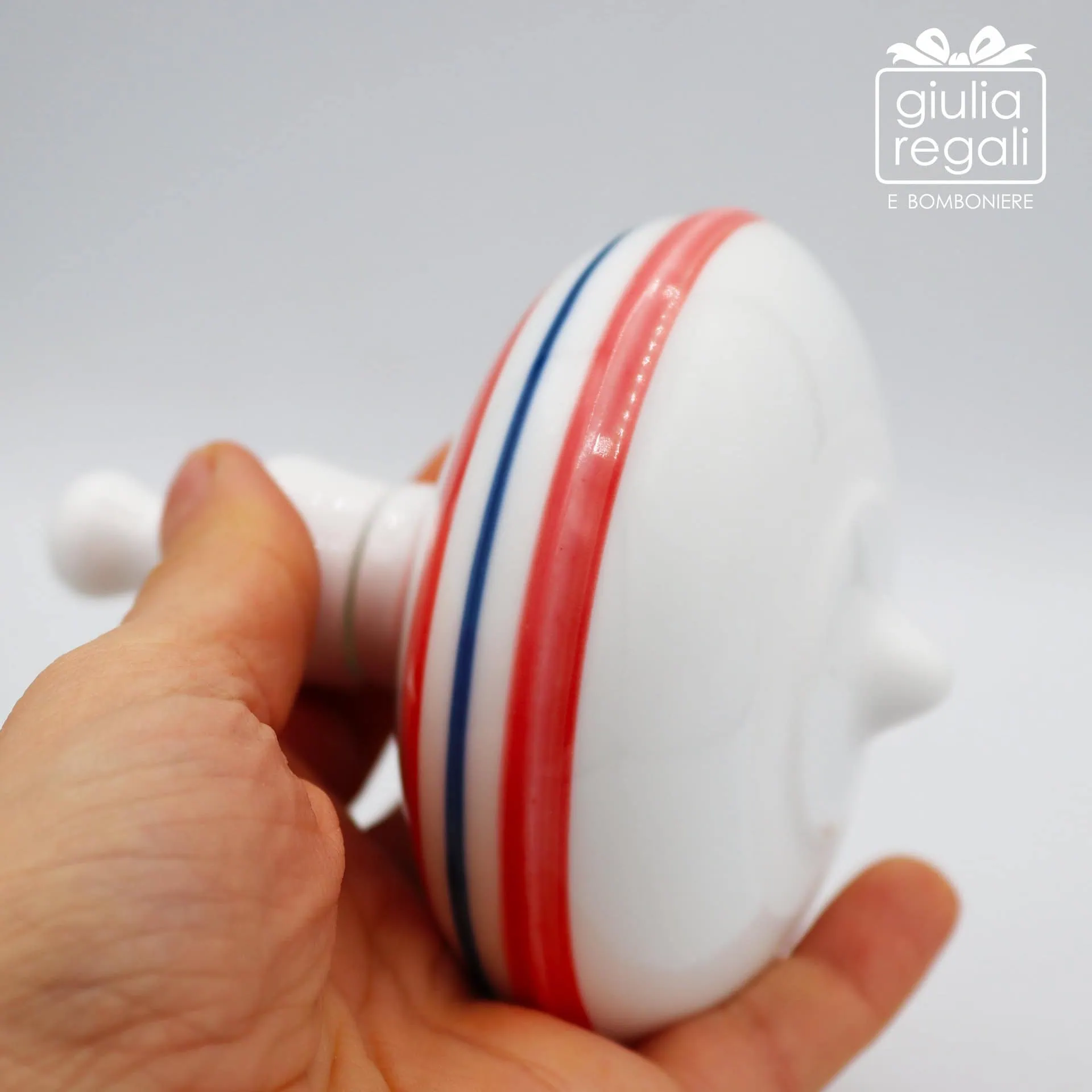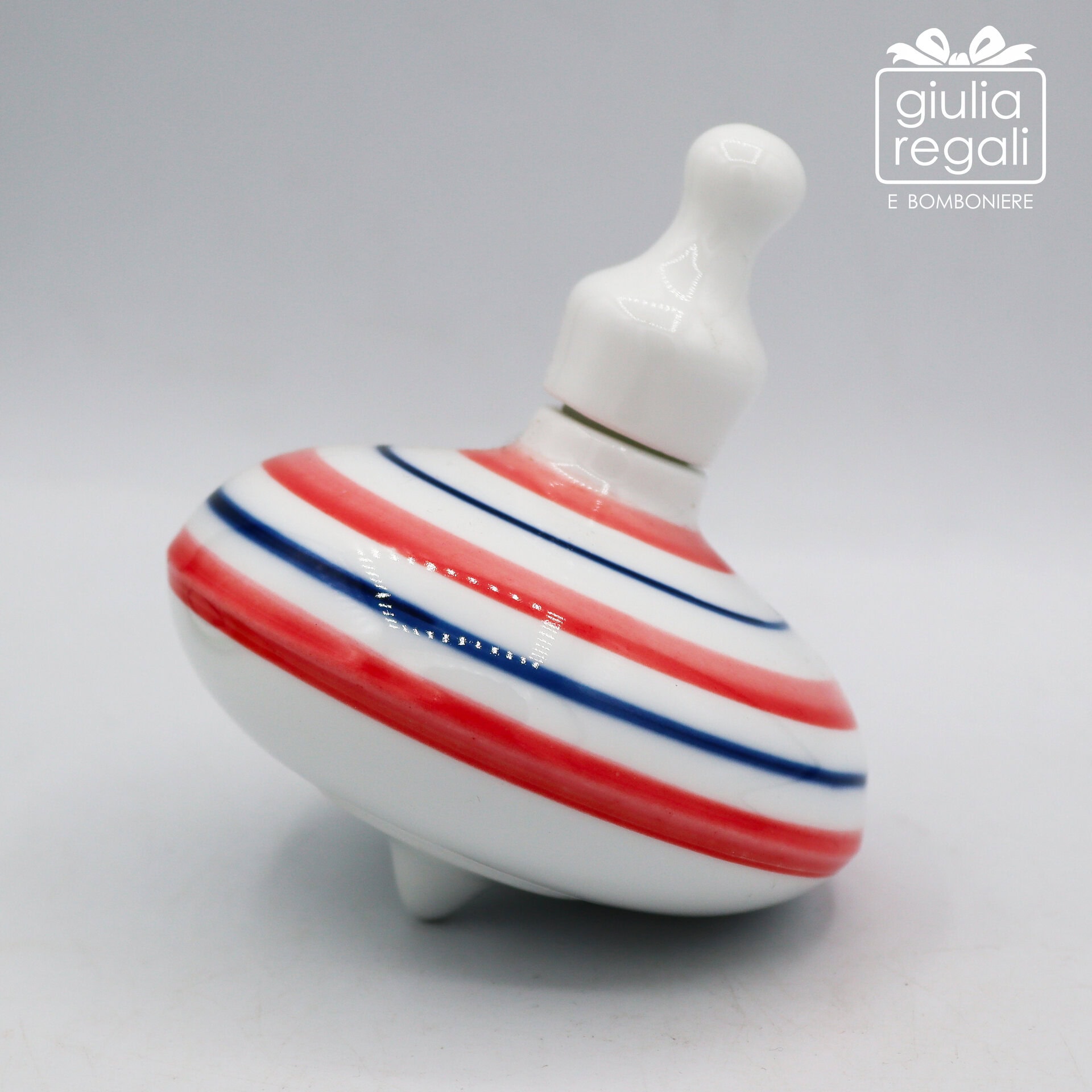 Questa trottola in porcellana è un oggetto decorativo raffinato e originale, caratterizzato da una finitura bianca lucida impreziosita da eleganti righe colorate. Il design armonioso richiama il movimento e la leggerezza della classica trottola, reinterpretata in chiave contemporanea.