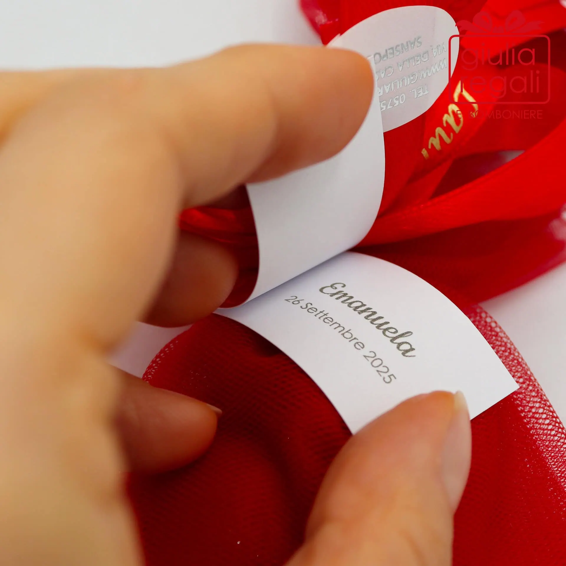 Questa bomboniera simpatica e originale è perfetta per celebrare un momento speciale come la laurea! Ogni confezione è composta da un sacchetto semitrasparente realizzato con due strati di tulle rosso, che racchiude al suo interno 5 confetti rossi, simbolo di buon augurio e prosperità. Completa la confezione un bigliettino personalizzato con il nome del festeggiato e la data della laurea.