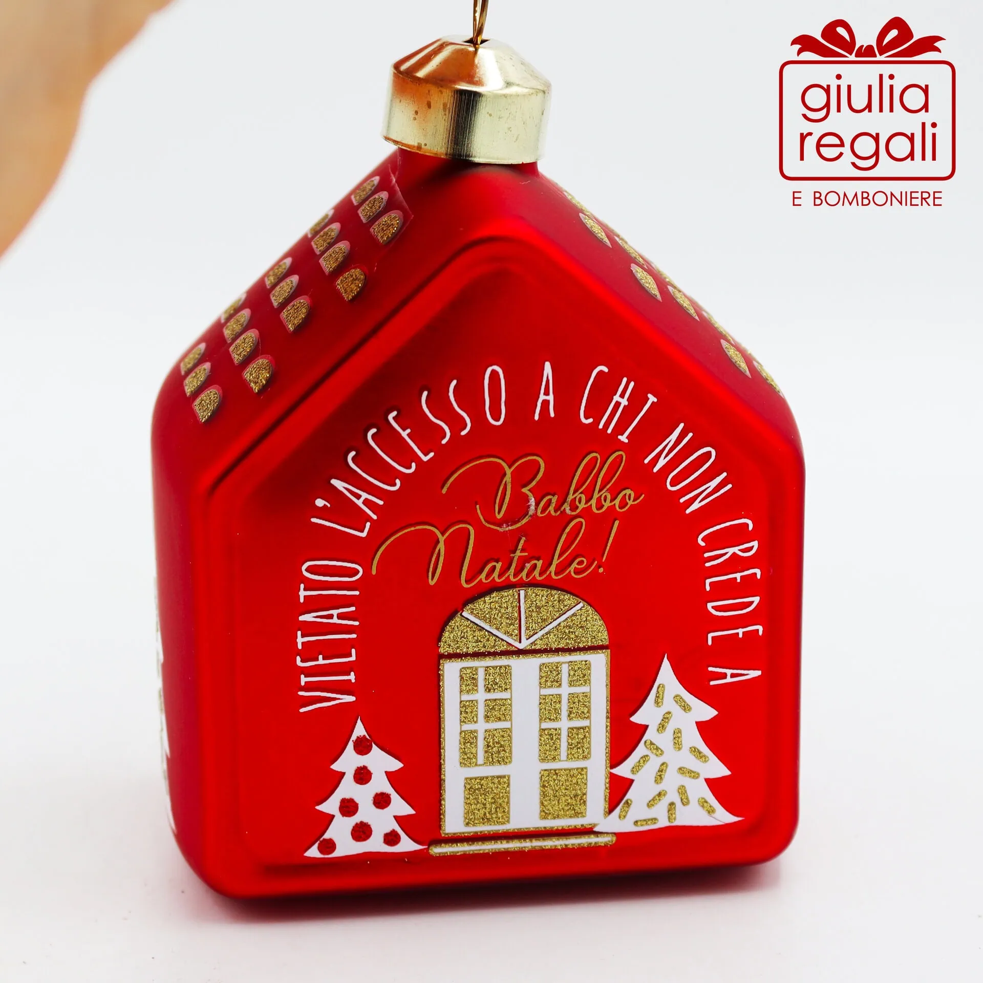 La scritta “Vietato l’accesso a chi non crede a Babbo Natale” sulla facciata e i dettagli colorati rendono questa decorazione un simbolo di affetto e serenità.