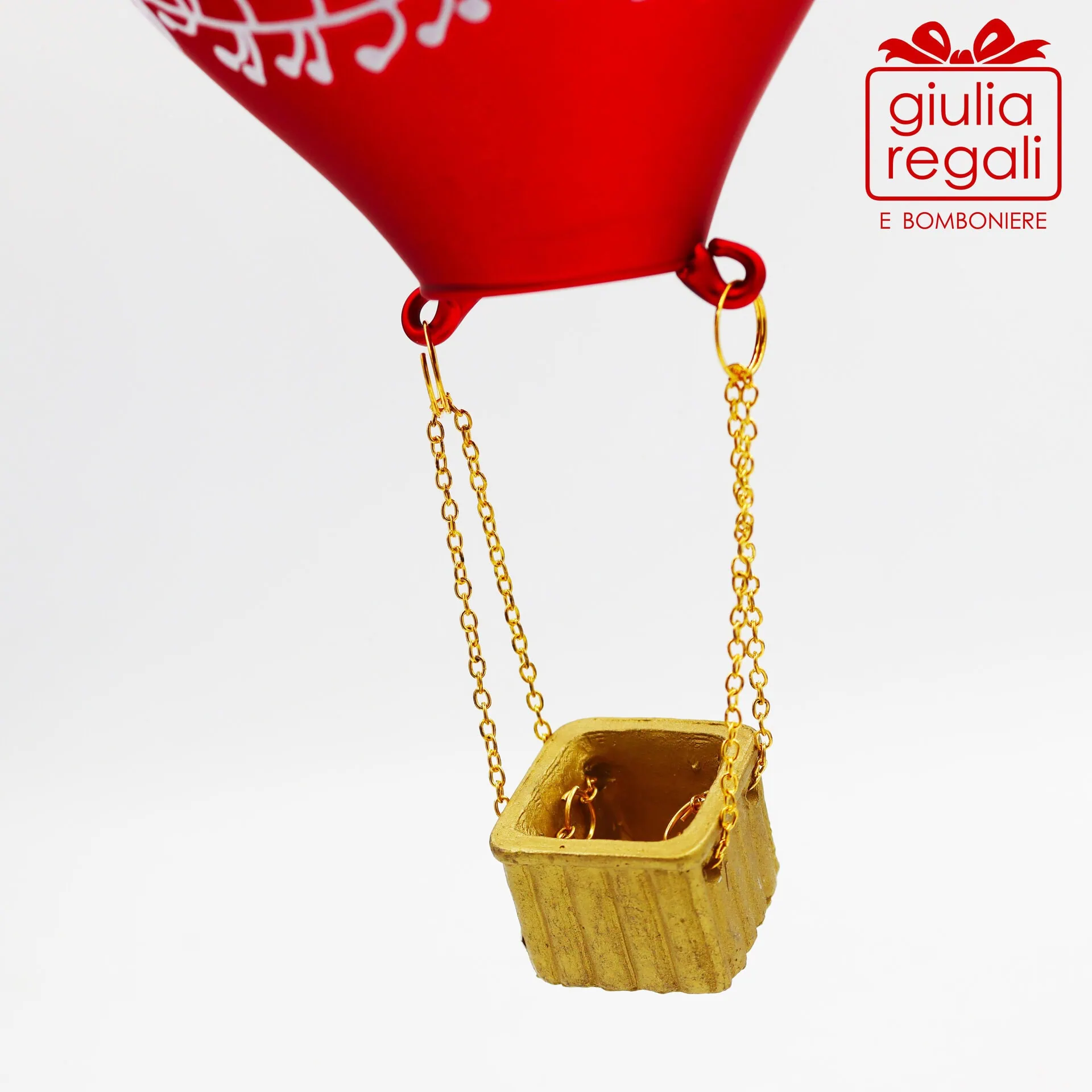 La mongolfiera reca la dolce frase “Ovunque andrai quello che hai nel cuore volerà con te”, che la rende un simbolo perfetto di sogni, libertà e nuove avventure.