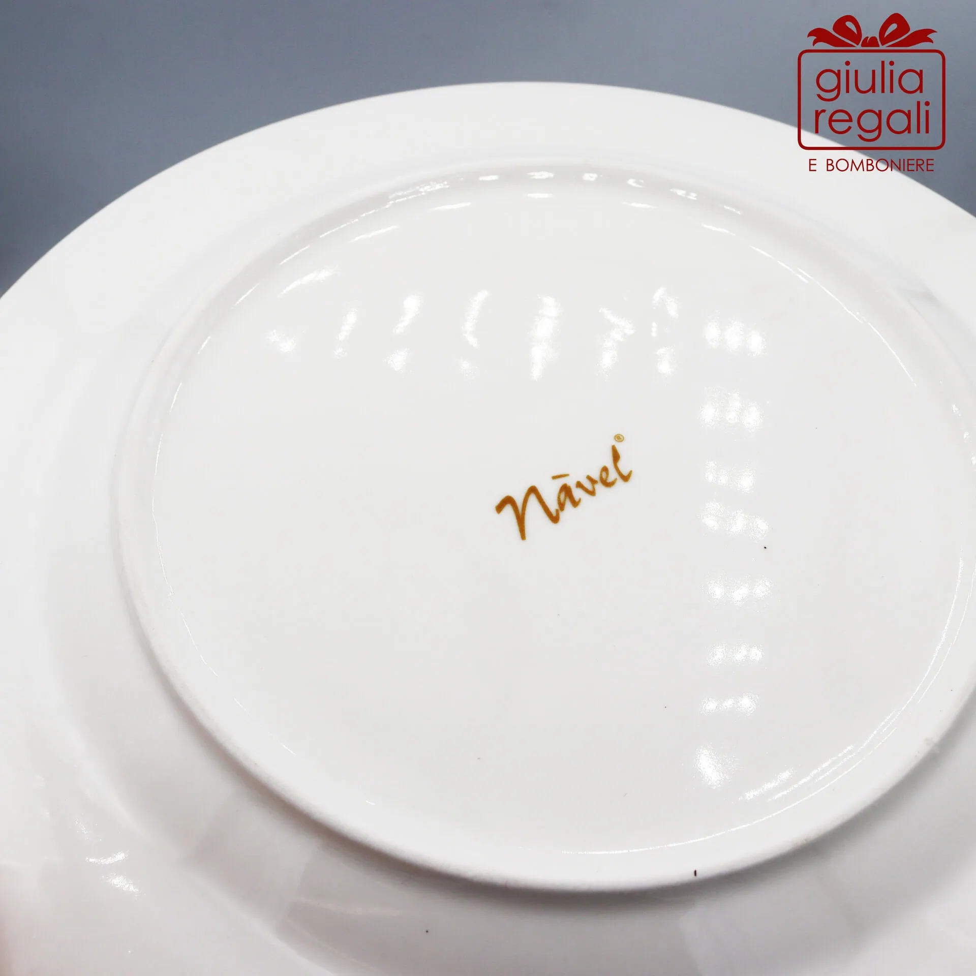Piatto natalizio in fine porcellana, impreziosito da un’elegante raffigurazione di un Albero di Natale al centro e da delicati decori rossi con campanelle lungo il bordo. Un design raffinato e tradizionale che porta subito in tavola la magia delle feste.