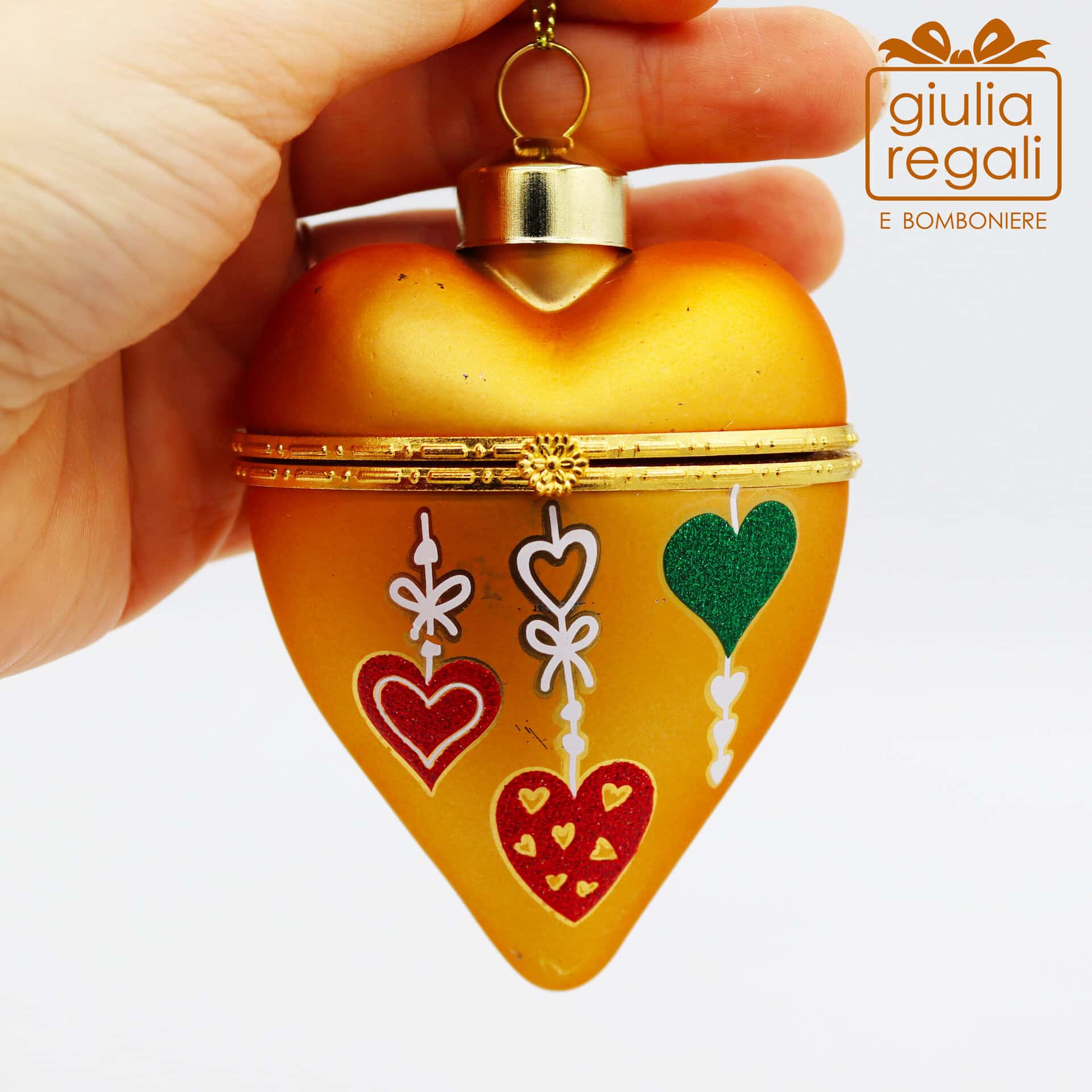 Scatolina cuore WALD con cerniera e pergamena interna con frase “Il Natale è come l’amore, magico e pieno di sorprese!”.