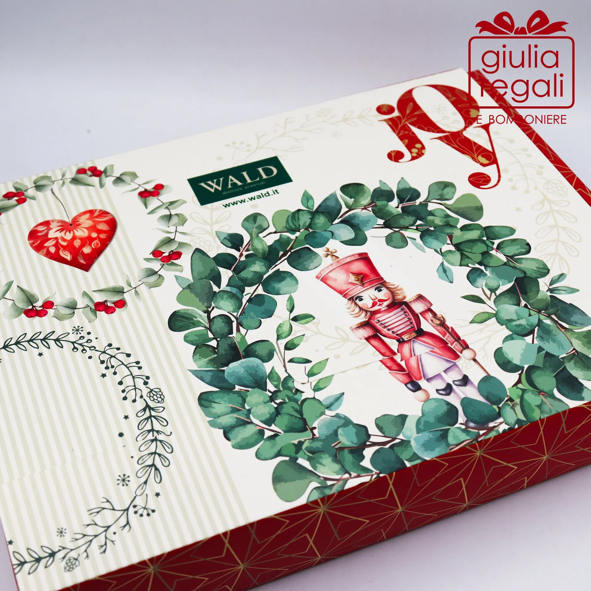 Il set è presentato in una scatola regalo elegante, impreziosita da una bellissima illustrazione natalizia che lo rende perfetto anche come dono per gli amanti della casa e degli accessori curati nei dettagli.