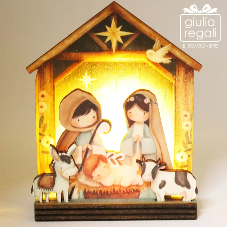 Bimbo seduto su tronco portacandela con uccellino – Natale