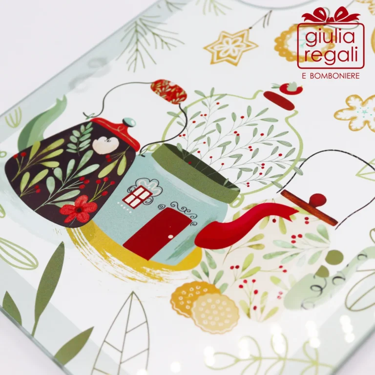 Tagliere vetro + strofinaccio Natale Ghirlande